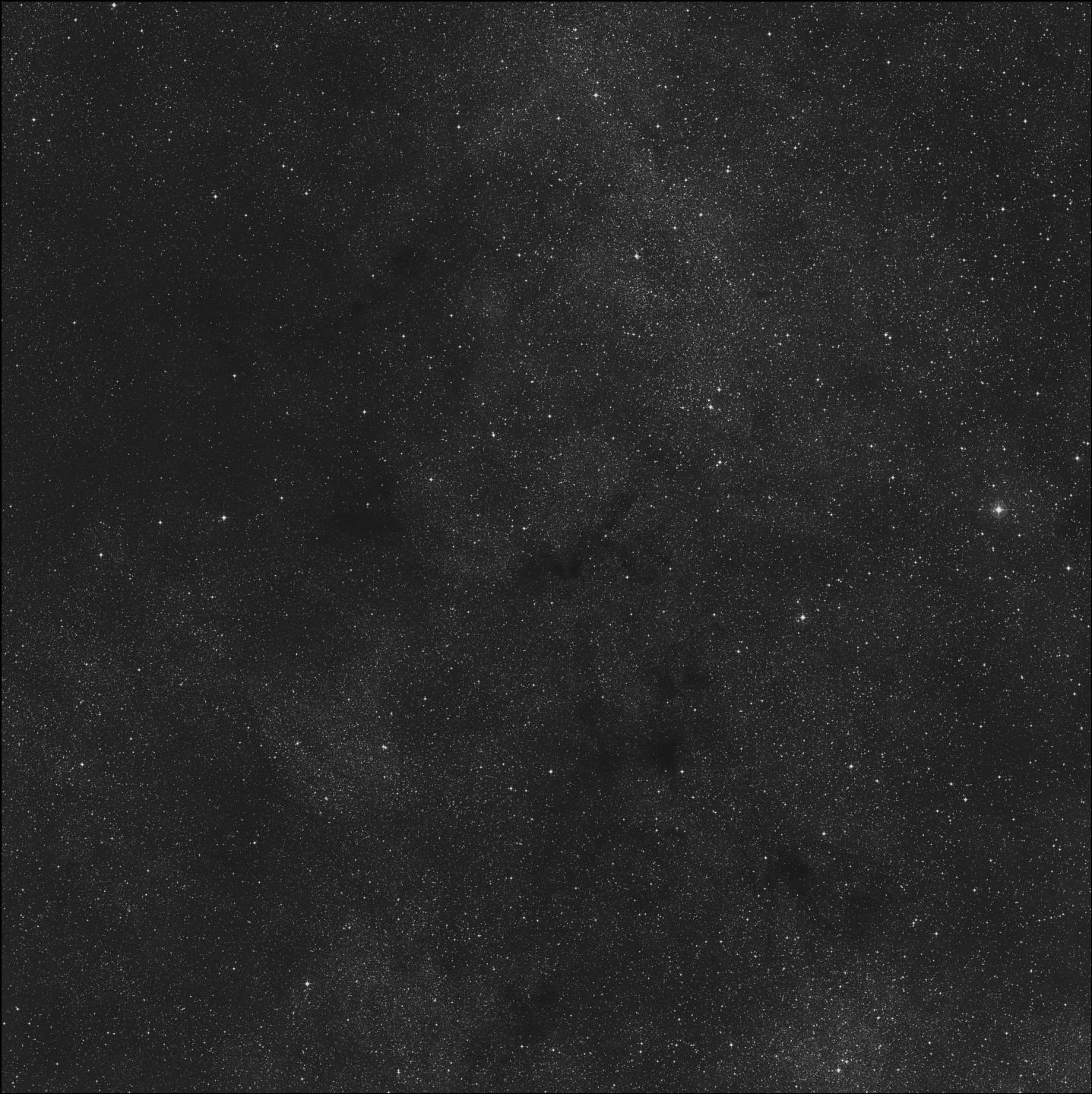 Barnard 96 es una nebulosa oscura en Scutum. Es una pequeña condensación de polvo, visible como un vacío en el denso fondo estelar.
